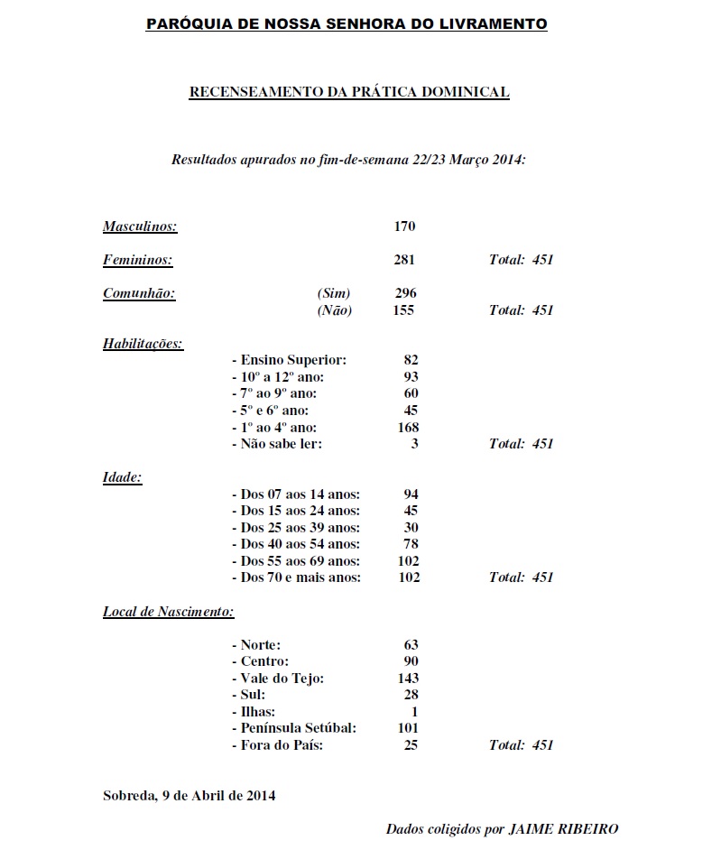 PARÓQUIA EM NÚMEROS janeiro 2015